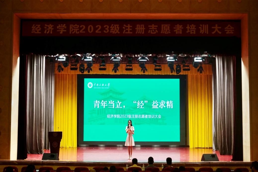 为进一步弘扬志愿服务精神,帮助2023级新生了解学院志愿服务活动体系,11月3日晚,经济学院在学术会堂召开2023级注册志愿者培训大会。经济学院团委书记安树庭、2023级辅导员熊岳炜、华文健出席大会,兄弟学院青协代表、经济学院青协全体成员、2023级全体注册志愿者参会。本次大会由经济学2202班陈芷懿主持。