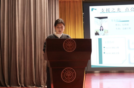 优秀志愿者代表,经济学院保险2101班余晶同学分享了自己参与志愿服务活动的经历。她讲述了团队力量与奉献所带来的精神满足如何支撑她持续投身志愿服务。她表明将坚守志愿服务精神,助力社会和谐发展,并激励学弟学妹们积极参与,以青春热忱传递志愿力量。