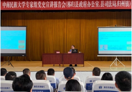 易新涛教授在归州镇公共文化服务中心以《中国共产党为什么能一直往前走》为题作报告。他结合当前党史学习教育的时代背景、重大意义、重点内容,从坚定的信仰信念信心、崇高的革命英雄主义精神、不断创新的科学理论的指导、一支坚强的党的队伍、始终以人民为中心、勇于自我革命等六方面进行阐述。秭归县政府办公室、县司法局、归州镇等单位负责人及广大党员干部参加了此次活动。报告会由归州镇党委书记罗朝政主持。