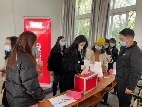 2021年12月1日12:30,马克思主义学院作为洪山区第三选区第19选举小组,开展洪山区人大代表选举活动。考虑防疫要求,教师、研究生在1号楼301教室进行投票,本科生在1号楼4楼大厅进行投票,按程序完成各项选举任务。