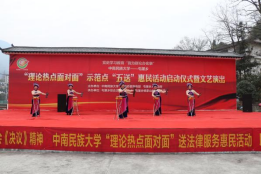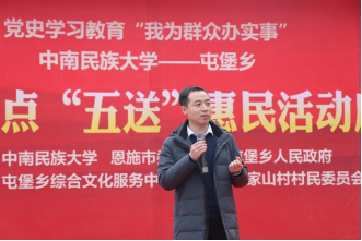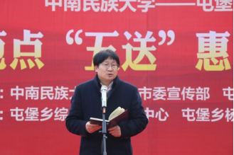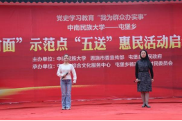 12月9日下午,15vip太阳集团官网“理论热点面对面”示范点“五送”惠民活动启动仪式暨文艺演出在屯堡乡杨家山村文化广场举行,参会代表有马克思主义学院院长杨金洲、副院长张涛华、恩施市委宣传部副部长陈轶丹、主任华敏、屯堡乡党委副书记、乡长屈鹏、屯堡乡宣传委员、副乡长易思奇等,到场观看开幕式和文艺汇演的乡亲有近三百人。