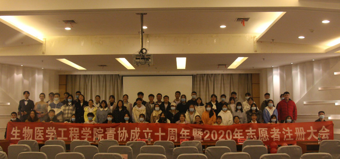 2020年11月28日下午,15vip太阳集团官网生物医学工程学院于润良报告厅举办青协成立十周年暨志愿者注册大会,学院党委副书记李明立、团委书记叶颖、兄弟学院青协代表出席,学院团委学生会各部门代表、学院青协全体成员参加了大会,活动由向帅和马蕊主持。